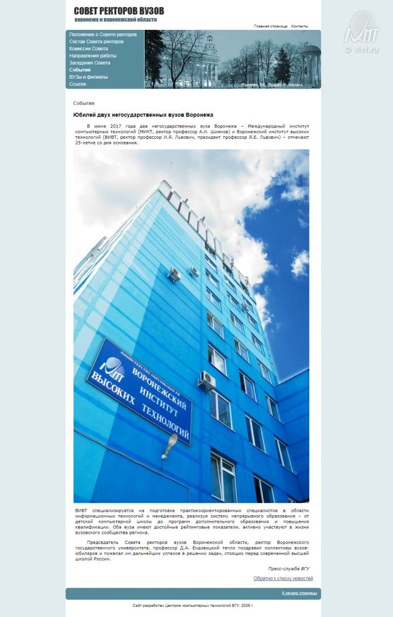 Новости международного образовательного центра ВИВТ